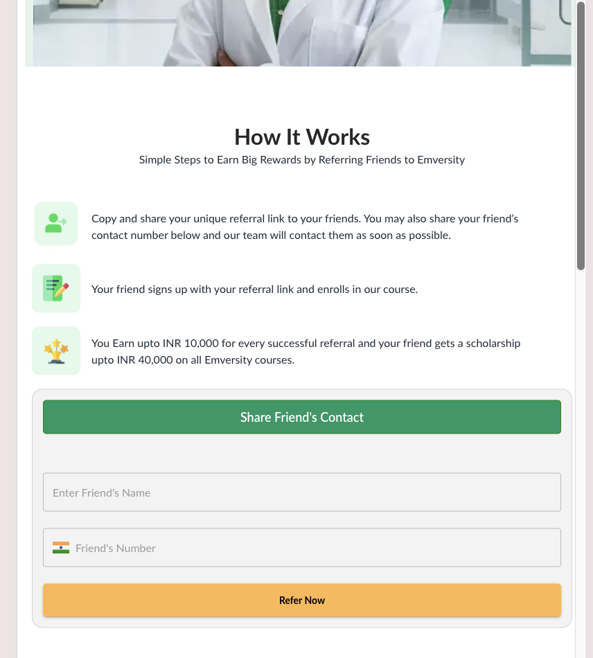 80% of leads came from paid Google Ads at ₹85K CAC. Referrals existed but were untracked, unstructured, and unrewarded. Students were recommending Emversity to friends with zero incentive or visibility.